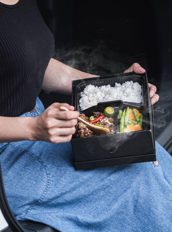 The nice thing about hotbox is that it continues to heat up your food up to 30 minutes, eliminating the need to eating in a hurry.